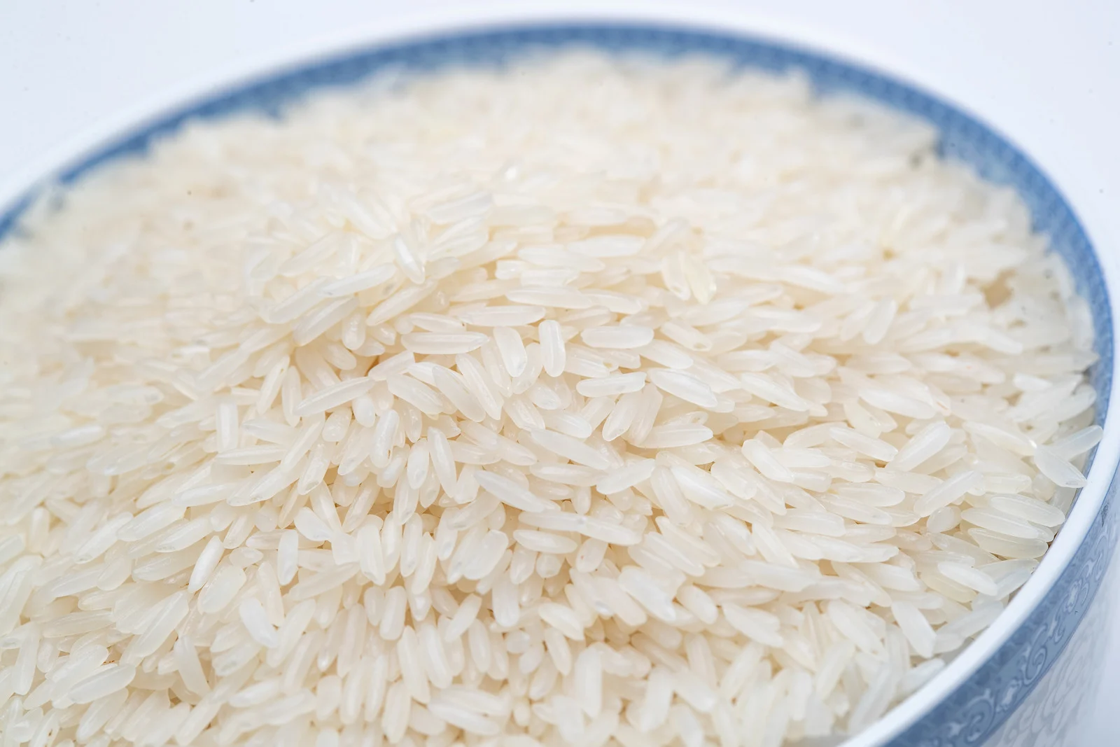 ST25 rice features long, slender, translucent white grains with a soft, glossy texture when cooked.